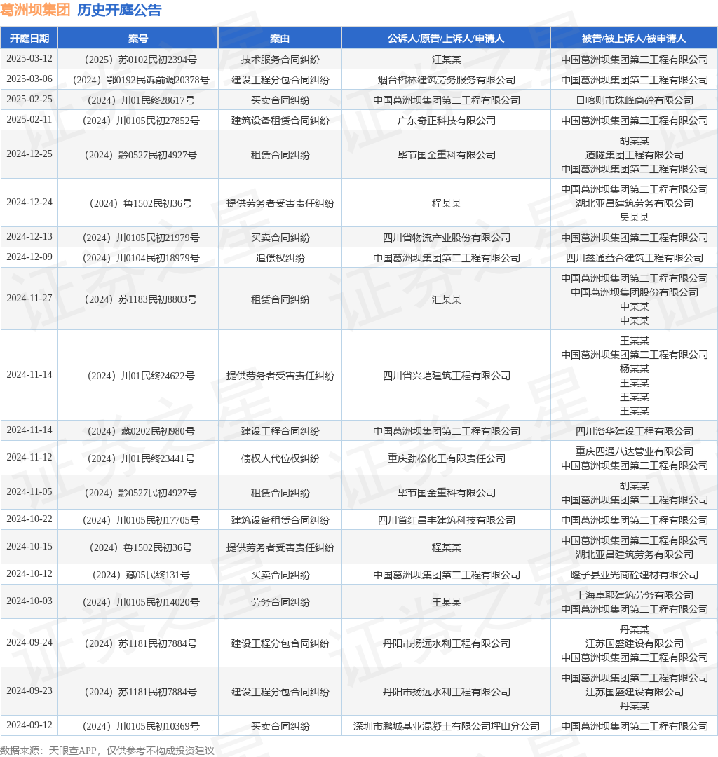 本站消息,根据天眼查APP显示,近日公布了一则中国葛洲坝集团第二工程有限公司作为原告/上诉人的开庭公告,详细内容如下:
